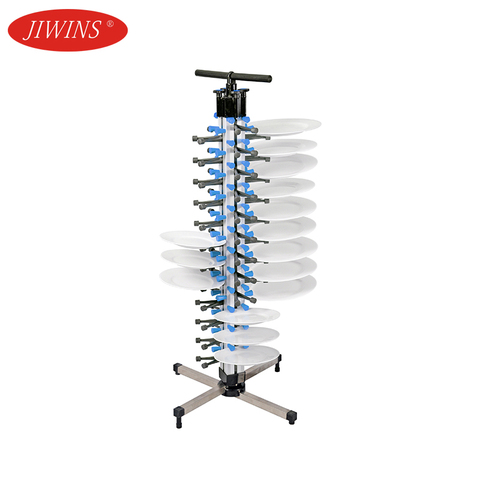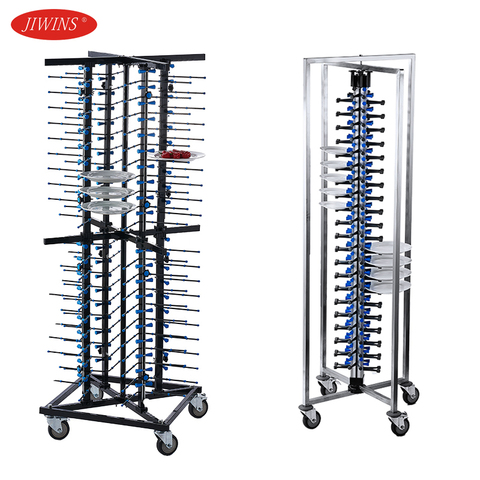 Jiwins फैक्टरी वाणिज्यिक होटल रसोई उच्च स्थिरता मोबाइल समायोज्य थाली पकवान रैक 48 प्लेटें भंडारण जैक ढेर